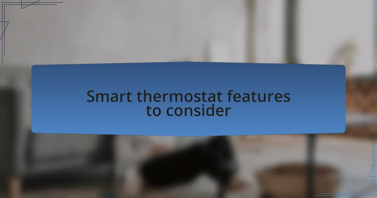 When exploring smart thermostat features, one must consider Wi-Fi connectivity as a game changer. Having the ability to control my home’s temperature from anywhere through a smartphone app has made a significant impact on my daily routines. I remember a day when I was stuck in traffic, and I realized I could start heating my home before I even arrived. This feature truly adds a layer of convenience I hadn’t anticipated.